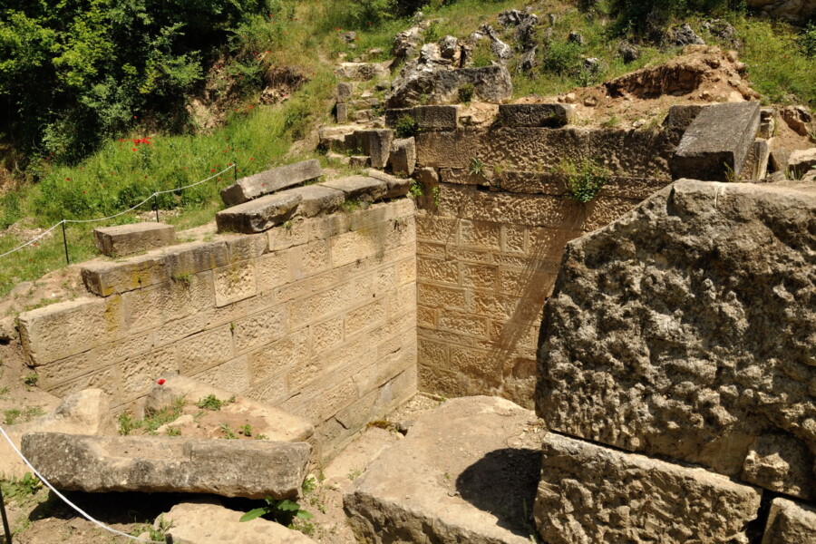It should be emphasized that the decorative travertine, built with a core of crushed stone and packed clay and finished stone faces, is Hellenic. The decorative barbotine technique, with slightly raised smooth frames, flat faces, and edges lying in the same plane, are features of Athenian architecture of the 5th and early 4th century BC. These elements clearly contrast with the features of the later, Hellenistic period, which began forming around the middle of the 4th century BC. The enumerated features, crucial for dating the tomb, are fully supported by the ceramics found, which are dated to the same time.