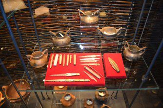 The Bronze Age collection in the Archaeological Museum of Macedonia represents a single entity, through which only in this one place may be seen the results of investigations of the Bronze Age in the Republic of Macedonia until today. It is composed of items that show the daily activities of the population and the manner of inhumation and funeral customs characteristic of the Bronze Age in Macedonia. Through them, a picture is obtained of the chronological, territorial and cultural connections of our territory with the broader region of the Balkan Peninsula and southeastern Europe.
