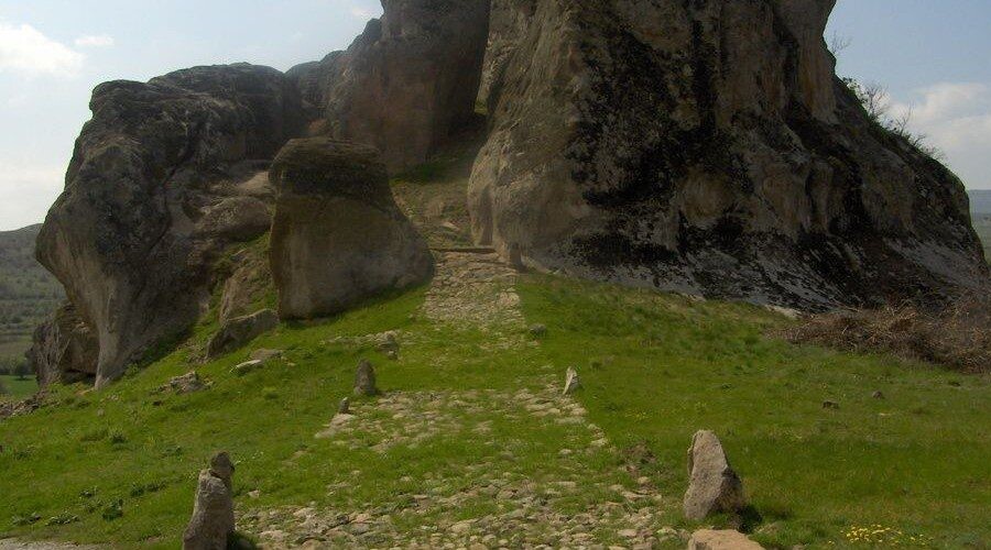 surroundings was of great strategic importance for the safety of the city and its residents in the turbulent times of the 6th century. The site is known for its variety of rooms and features carved into the rock on the southwest side of the hill. There is a tradition that in the past they were used as monastic cells.