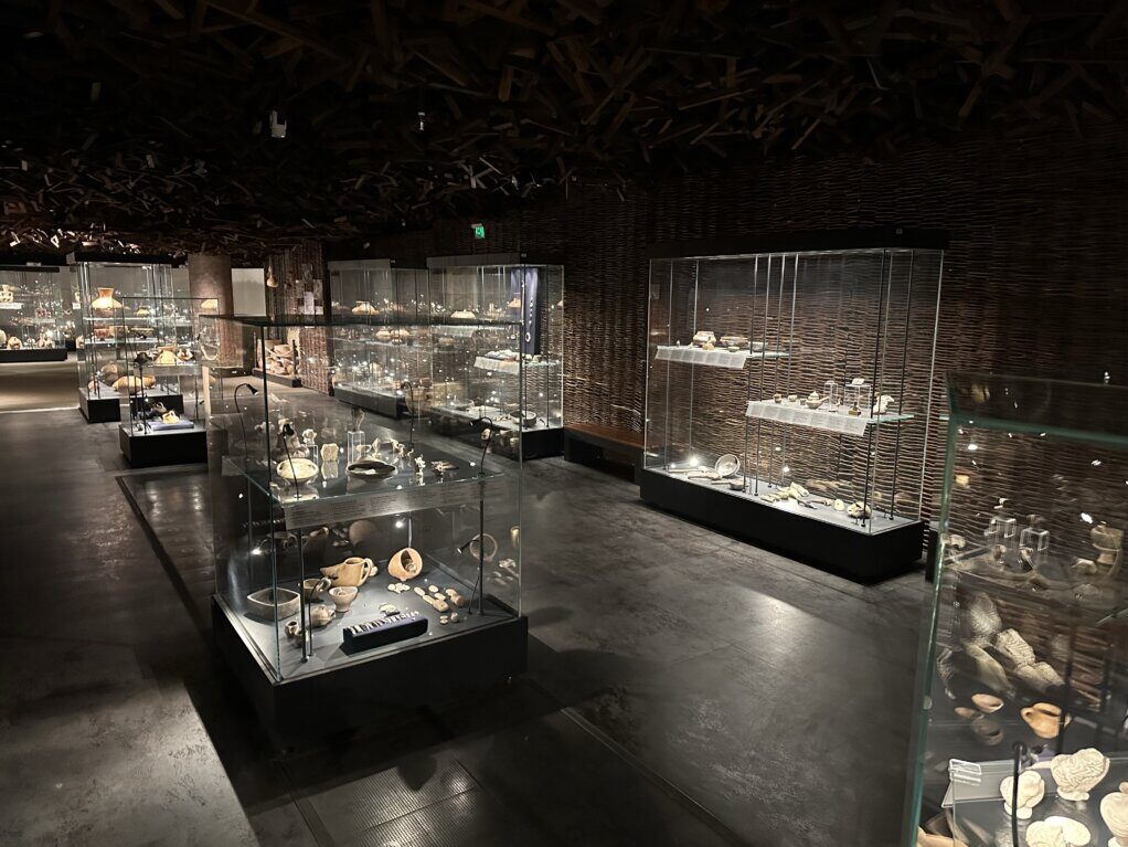 In the next area, ancient sculptures, architectural elements, and bronze objects from historical cities illustrate the skill and artistry of past craftsmen.